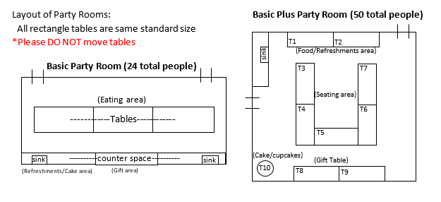 Use of the party room for one hour PLUS 30 minute set-up time prior and 15 minute clean-up time after
